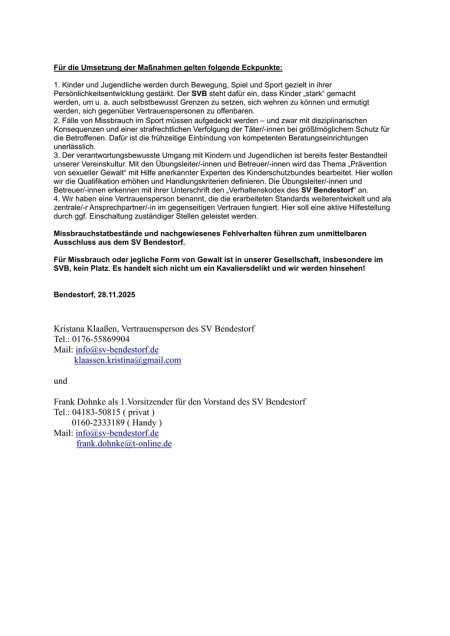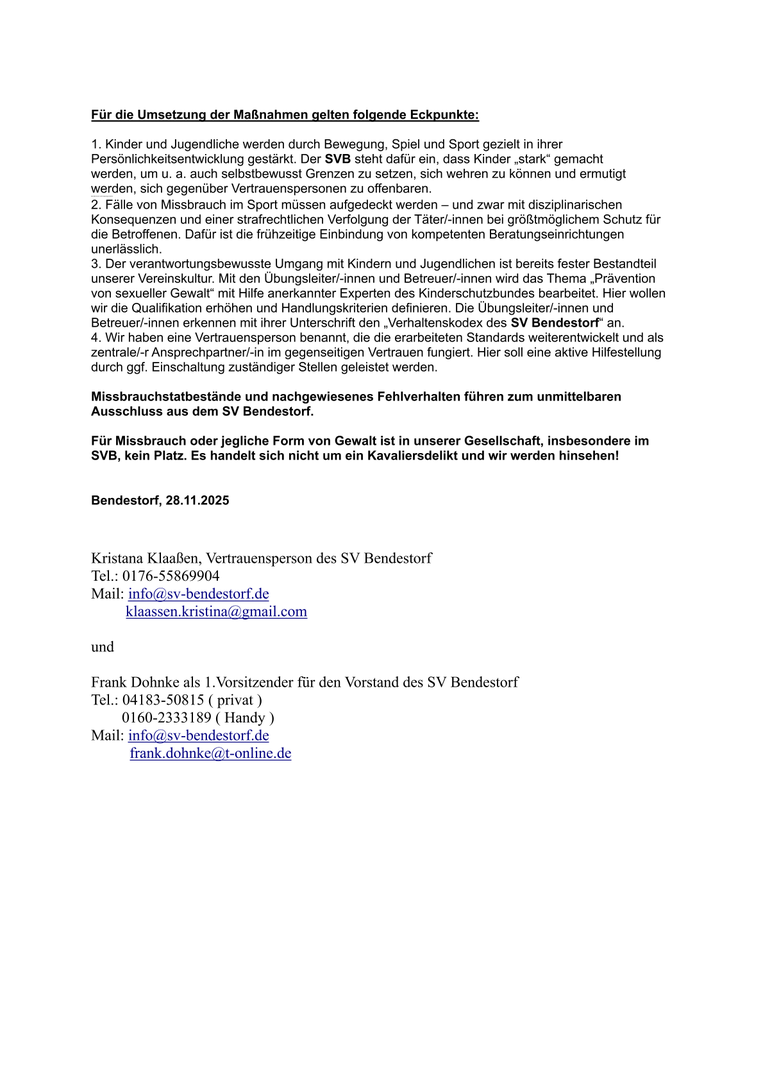 Solltet ihr noch Anmerkungen, Fragen oder Vorschläge haben könnt ihr uns diese gerne unter info@sv-bendestorf.de mitteilen.